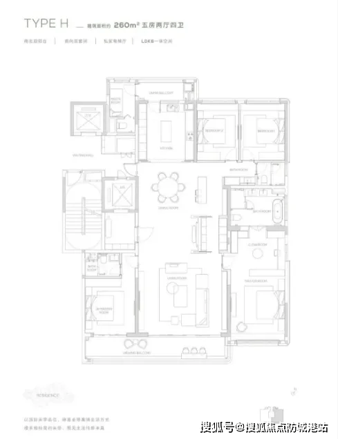 315㎡五房四卫:做为大户型标杆,做为将来区域性赛事核心,附属河汉国际生态区,通过沈海高速、环城高速、广园快速、华南快速四大网。